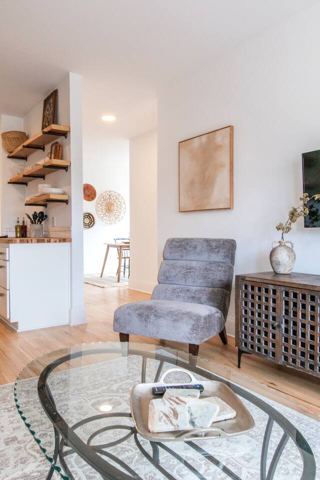 This unit has everything you need and more. Enjoy cooking in our full kitchen with access to all your basic cooking needs. From pots and pans, utensils and spices - we’ve got you covered. A microwave and coffee maker (with locally sourced coffee from Rising Star) are also provided for an easy morning in. Enjoy eating your take out or home cooked meals peacefully in the dining area. Lounge around on our comfy sofa that will make you feel right at home. Our 42” smart tv will keep you entertained with access to all your favorite streaming services. When you’re ready to call it a day head on over to the bedroom which boasts a wonderful king sized bed with luxurious linens and if you feel like unpacking, a closet is provided in the bedroom to hang your event-ware along with anything else you’d like to organize. Our bathroom has a full size shower/tub and all towels (bath towels, hand towels, and face towels) are supplied. Also included are all your showering needs from shampoo, conditioner, to locally made STEM soap. A hair dryer and basic toiletries are also provided to help make packing for your trip as stress free as possible. If you have any questions please feel free to message us and we truly look forward to hosting you.